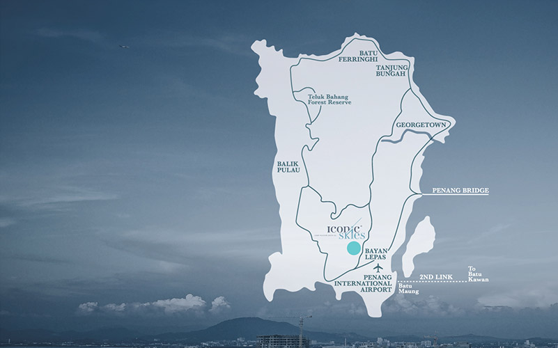 Penang Island is well acclaimed as the 8th livable city in Asia. Set amidst Relau, a verdant haven adjacent to the development vicinity of Penang, unspoilt natural beauty abounds here. Iconic Skies is minutes away from convenient amenities well connected by dedicated road. With the excellent accessibility, Penang International Sports Arena (PISA), Metropolitan Park, and Bayan Lepas Penang International Airport are all within close proximity.